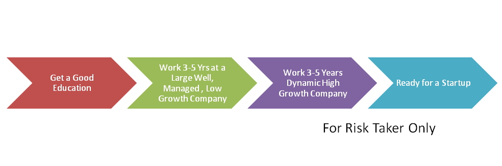 - After this experience, for the risk taker, one would be ready for working at startups typically at $10-30M in sales, growing 100% a year over year, be given even more responsibility and/or a management position, offered a larger equity position, and be ready for a higher potential/payoff but high risk with high failure rate experience.
